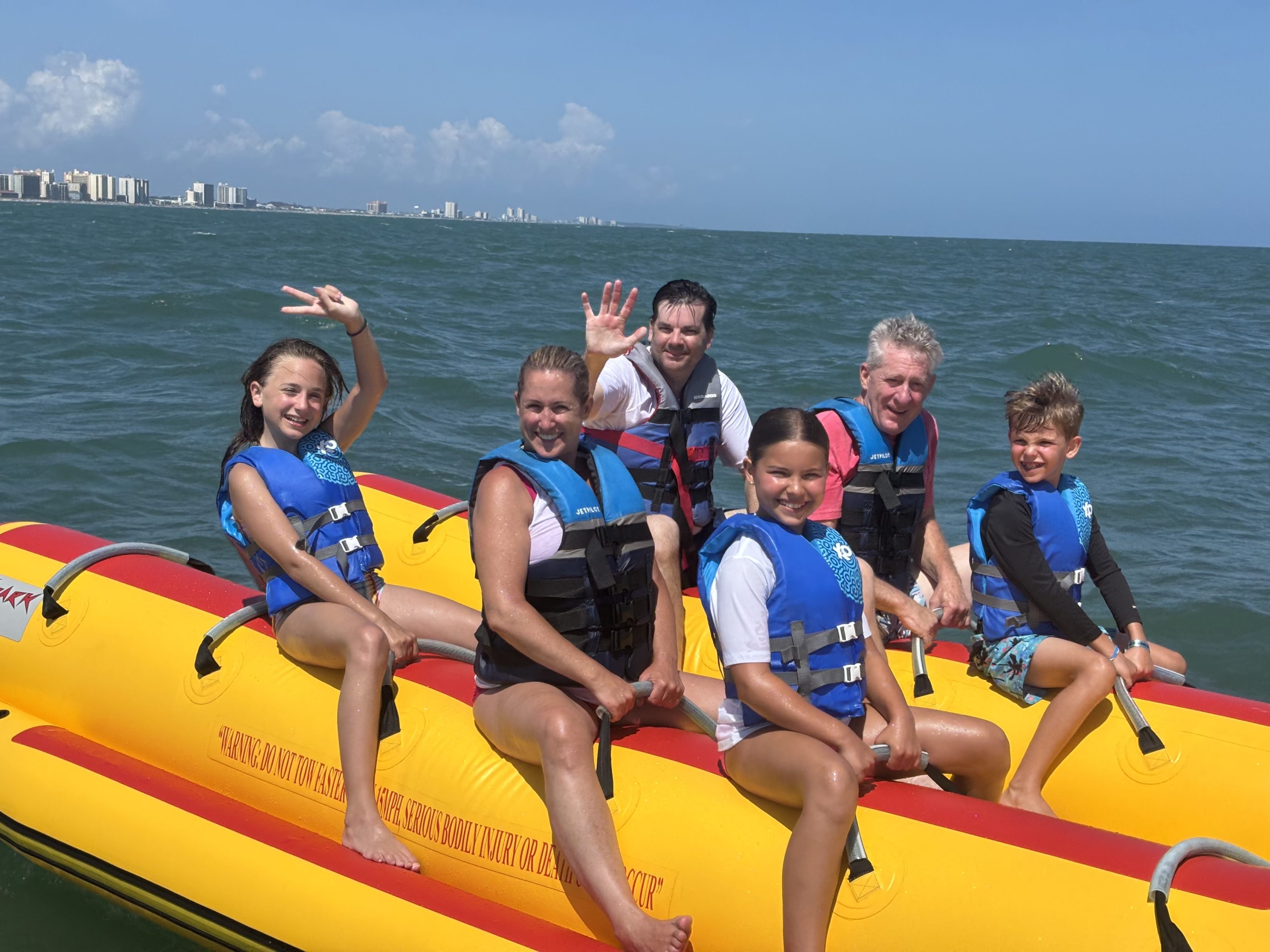 10 to 12 minute ride on a banana boat pulled by jet ski through the ocean waves by our certified captains